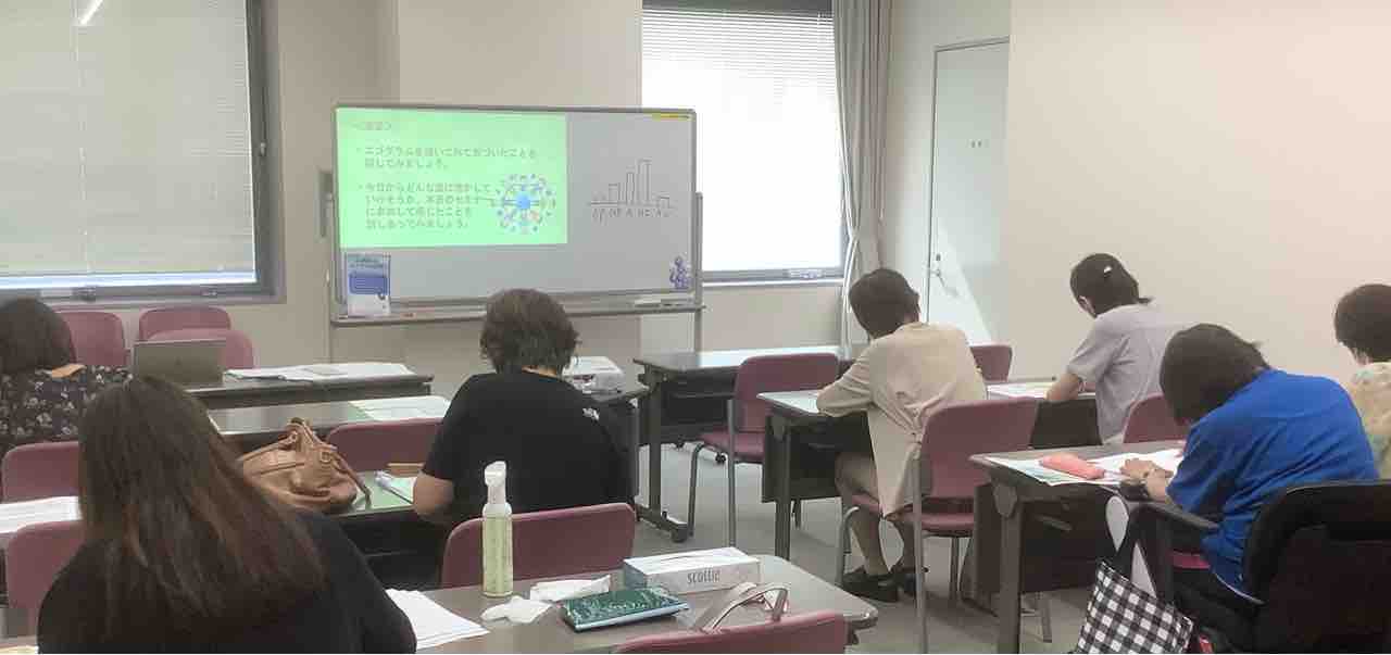 写真は、まさにエゴグラム作成に取り組んでおられるご参加の方々です。猛暑日宣言の暑い時間帯にお集まりいただき、一緒の場を共有してくださったみなさま、本当にありがとうございました。